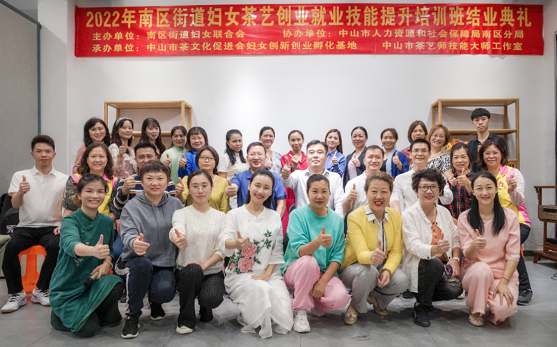 2022年11月11日,南区街道促进妇女创业就业技能培训项目--茶艺技能提升培训班在华通行茶叶市场“南区街道妇女创新创业孵化基地”举行了结业典礼。