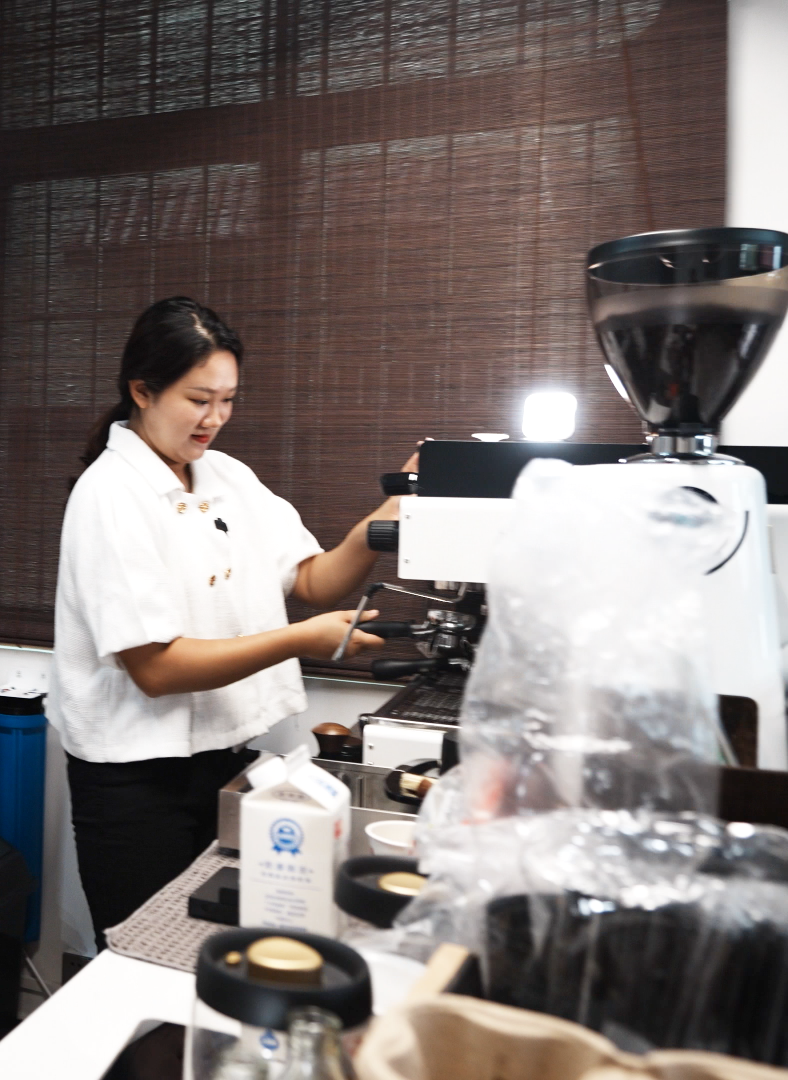 随着里溪村“美丽家庭”建设工作的推进,吸引了众多“候鸟”归巢。“里溪媳妇”梁女士一手牵着丈夫一手拿着咖啡杯回到丈夫成长的里溪村,在金银花长廊前的祖屋开了一间咖啡店。“闹中取静,一本书、一杯咖啡就可以治愈平时的不开心”。梁女士讲述他们回到里溪村开鲤咖啡的初衷。