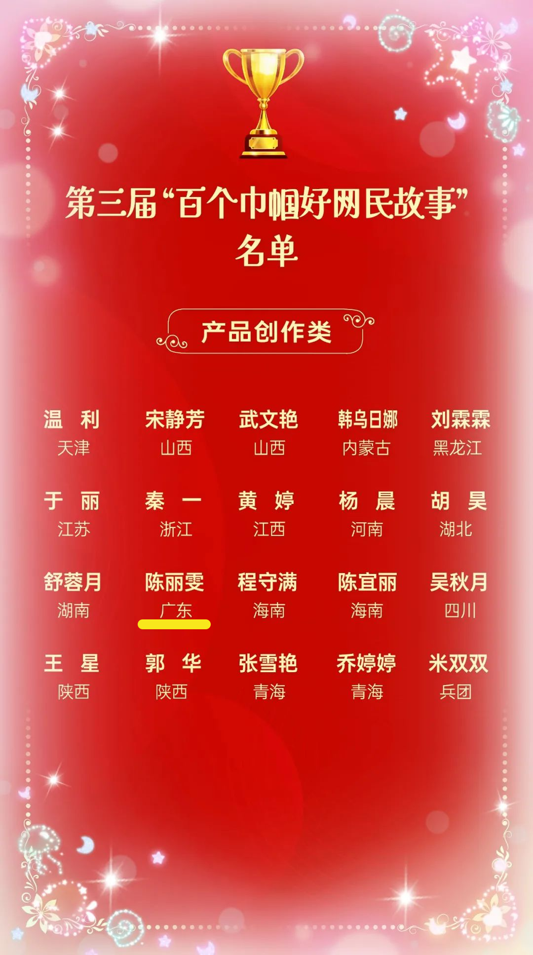 2022年,全国妇联宣传部、中央网信办网络社会工作局组织开展了第三届“百个巾帼好网民故事”暨“十大争做巾帼好网民优秀案例”征集推选活动,在网络空间大力唱响主旋律、传播正能量,吸引数千万网友倾情点赞。6月6日,在2023年度“争做巾帼好网民”主题活动启动仪式上,推选结果正式发布。