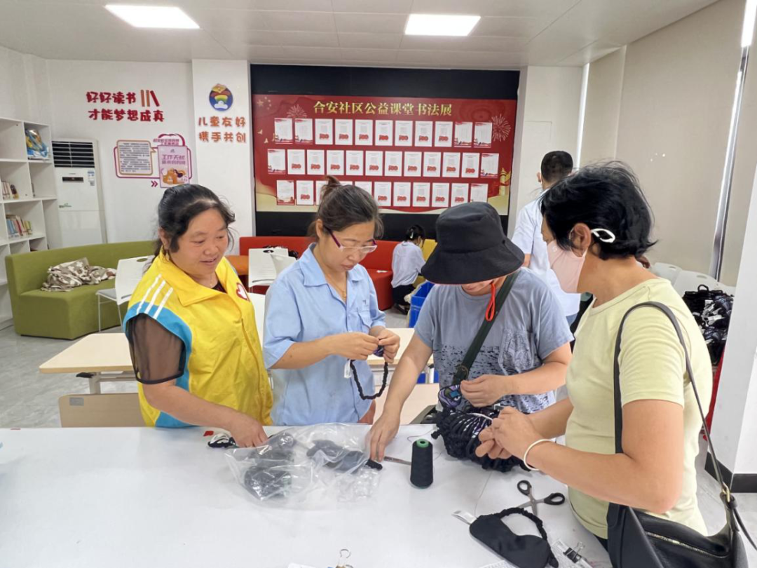 在合安社区“妈妈岗”工作服务站,有一部分妈妈们的孩子还未到上幼儿园的年龄。为解决妈妈们带娃工作的后顾之忧,站点内还单独设置了一个儿童玩乐区。妈妈们能够带着孩子前来工作,孩子们在这里可以结伴玩耍、阅读绘本。社区志愿者也会帮忙照看,让宝妈们安心工作。