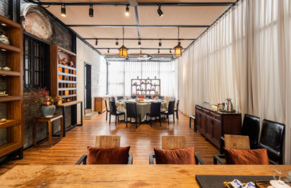 说干就干,陈苑碧邀志同道合的朋友一起创业。但把老宅改成餐厅却并非易事,在尊重历史、保留古建风貌的同时又要满足餐厅的功能,需要小心翼翼地找到一个平衡点。她请来专业工匠修缮,让复古青砖、满洲窗、老家具自然融入空间,还给每个房间取了“天青”“郎红”“玲珑”这样雅致的名字。在庭院里种下绿植,让沧桑老宅焕发生机,包裹出宁静独特的氛围。“生活即修行”是喜家的理念,她想打造的从不是单纯的餐厅,而是让人慢下来、享安宁的角落。