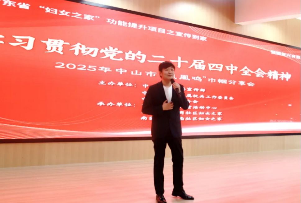 为深入学习贯彻党的二十届四中全会精神及广东妇女十四大精神,11月28日下午,由中山市委宣传部、市直机关工委、市妇联联合主办的“凤凰鸣”巾帼宣讲分享活动在树木园生态学馆举行。巾帼宣讲团成员通过分享奋斗故事,将党的创新理论以更接地气、更动人心的方式传递到基层一线。市妇联党组书记、主席余建思,市直机关工委副书记谭旭光,市妇联党组成员、副主席人选伍月桥,市委宣传部四级调研员刘钊妍出席活动,东区街道桥岗社区、南区街道城南社区妇女群众80余人参与活动。