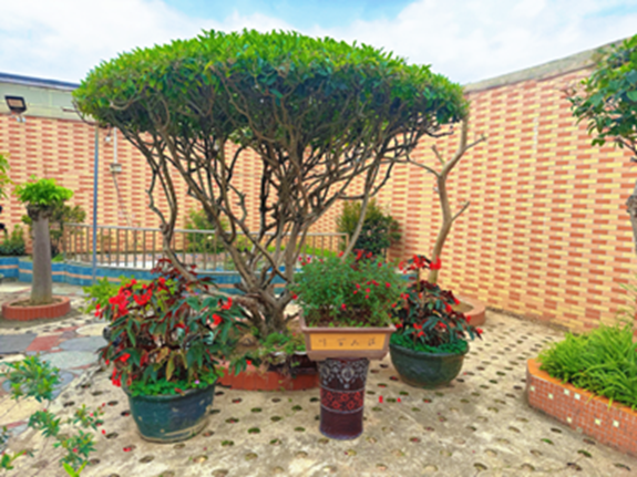 黎燕玉家的庭院坐落在中山市三角镇,推开家门,院子里布局精致,花草树木错落有致,还搭配了造型修剪、精美花盆与小摆件。经她打理,庭院既有中式韵味,又有现代居住功能,满眼皆绿、处处是景,让人忍不住驻足。说起自家庭院,黎燕玉总有说不完的话,满院绿植仿佛也在诉说她的绿意生活与人生历程。