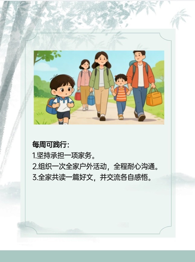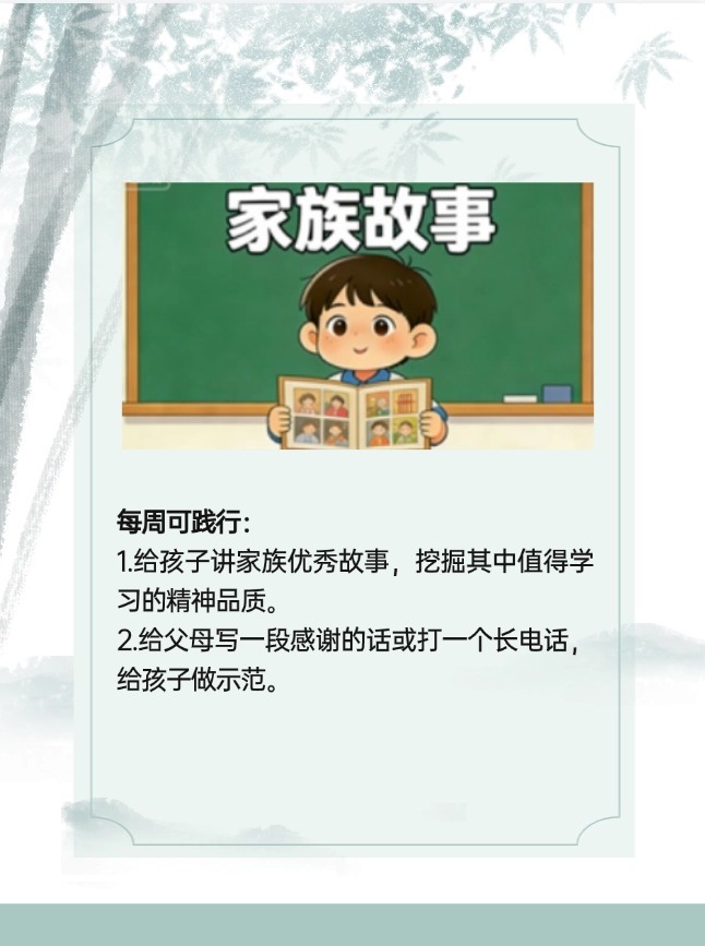 “尊长、勤学、俭朴、仁孝”,这条家训堪称“经典组合”。想知道如何带孩子一起体验吗?点击获取家庭版实践攻略。