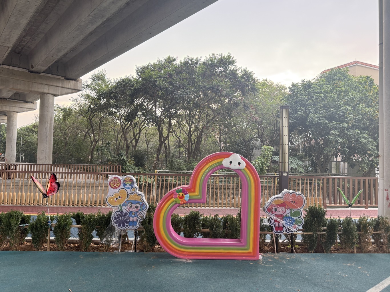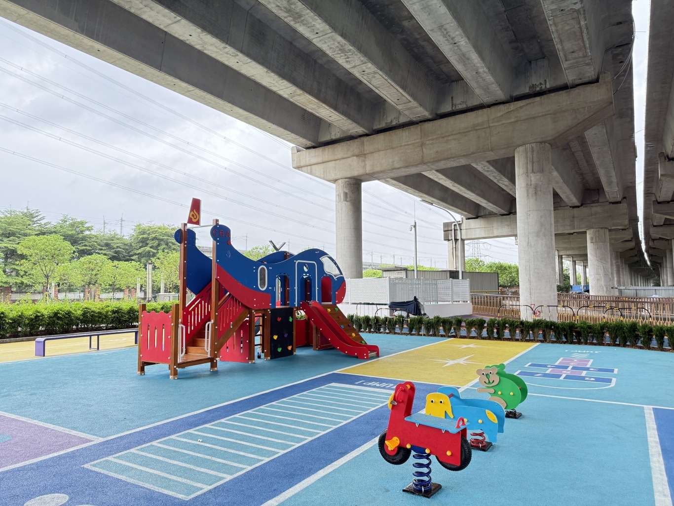 此前,广中江高速(小榄西区段)桥下及周边空间长期存在垃圾倾倒、杂物堆放等环境与安全隐患,制约社区绿美生态建设。为此,社区以《中山市儿童友好社区建设指引》《中山市高速公路桥下空间利用导则》为指引,融入“儿童优先、普惠公平”理念,结合市交通局指导,通过系列扎实的工作措施,将“一河两岸”人文景观带上的龙舟体育公园改造为传承龙舟文化与儿童友好的公共空间。