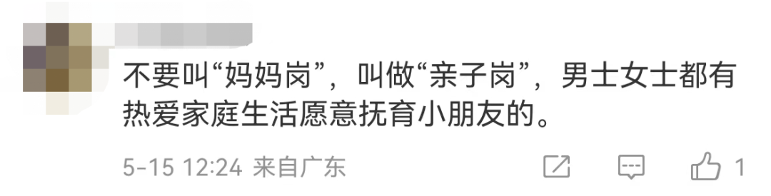 不过,也有网友疑问,妈妈们找工作不容易,正是因为她们被过重的育儿责任“绊住”了。而“妈妈岗”的存在,可能会加深社会对传统性别分工的认同,认为“带孩子只是妈妈的事”,“怎么没有爸爸岗”?