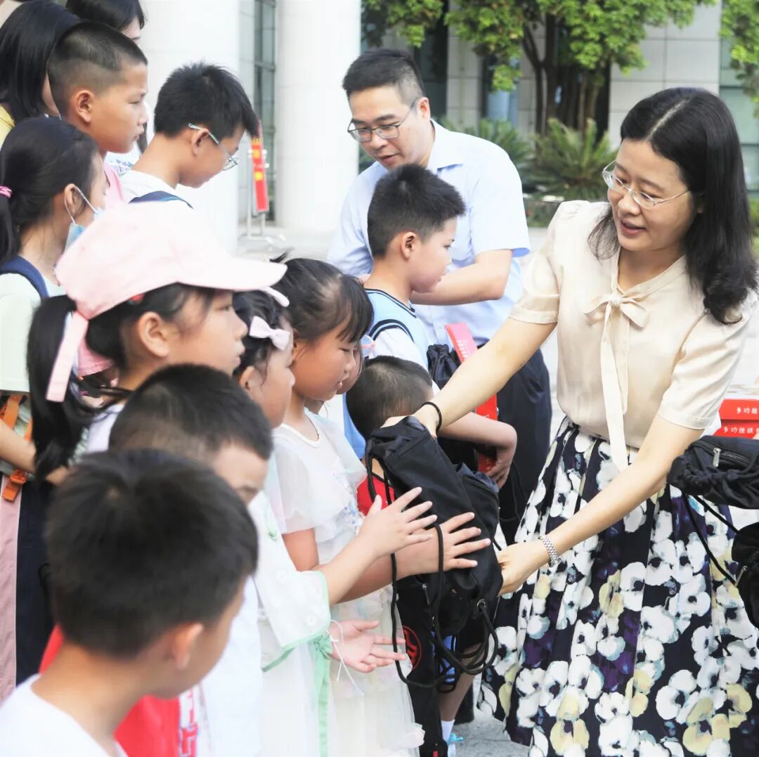 上午8点,市妇联副主席高峥、中山城市建设集团有限公司副总经理闫文静参加活动出发仪式,并为每位孩子送上学习用品。
