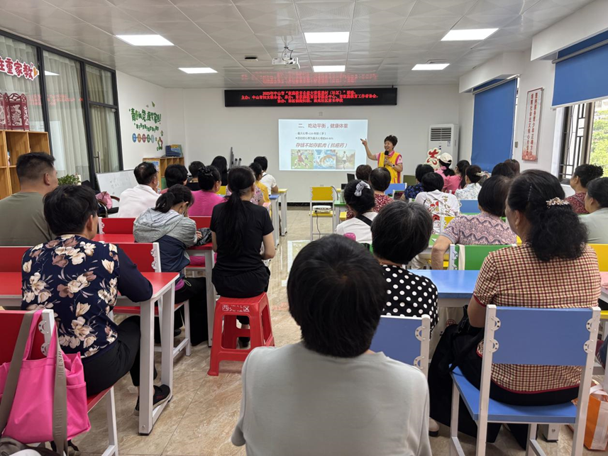 活动以家庭教育促进法宣讲开篇,强调家长作为家庭健康第一守护者的责任。在张翠梅医师带领下,亲子齐练八段锦,于舒缓招式中感受传统养生智慧。随后张医师结合生活案例,生动解析中国居民膳食指南的核心准则,从控盐控油技巧到特殊人群饮食搭配,为家庭送上实用健康锦囊。“原来菠菜焯水能去草酸!”一位妈妈兴奋地分享,“孩子现在主动要吃绿色蔬菜了!”