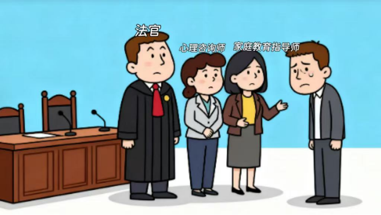 法院庭审时,对乙某的暴力行为进行了严肃的庭审训诫,明确指出其行为已属家庭暴力。并警示若再不改正,法院将发出家庭教育指导令,并将其作为评估其是否适宜继续抚养孩子的重要依据。同时,法院联合心理咨询师对双方进行了心理疏导和家庭教育指导。最终,乙某深刻认识到错误,书面承诺不再施暴。小丙谅解了父亲,父子关系得到有效缓解,双方达成调解协议。