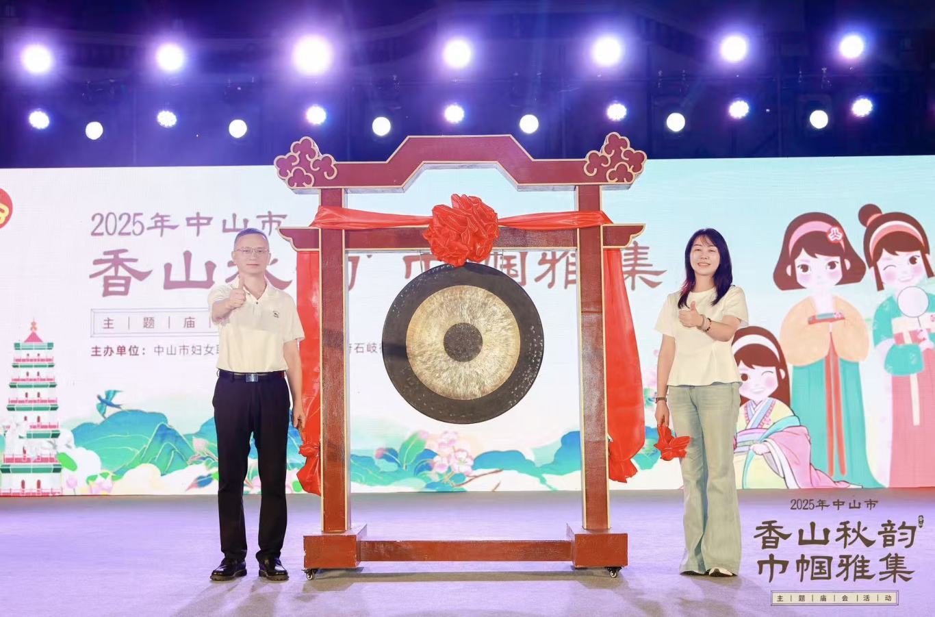 近年来,中山市妇联凝聚巾帼力量推进美丽庭院建设和庭院经济点培育,展现中山女性在“百千万工程”与绿美生态建设中的独特风采,持续推动巾帼创业与乡村振兴深度融合。为搭建展示与交流的平台,2025年10月18日—19日,中山市妇联联合石岐街道办事处在孙文西路步行街香山剧场举办“香山秋韵·巾帼雅集”主题庙会,市妇联党组成员、副主席潘航瑛、石岐街道办事处人大工委主任王安东出席活动启动仪式。
