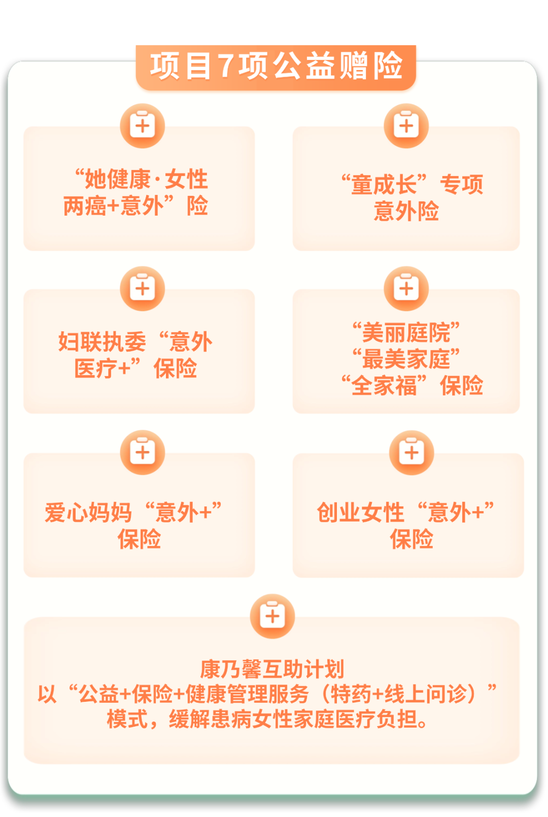 为更好地保障妇女儿童权益,2025年,市妇联和中国人寿中山分公司实施“中山博爱·她健康·童成长”慈善公益行动项目,通过公益赠险、入户慰问、公益宣传讲座、妈妈岗招募、巾帼志愿服务等系列活动,为支持、保障妇女儿童助力。