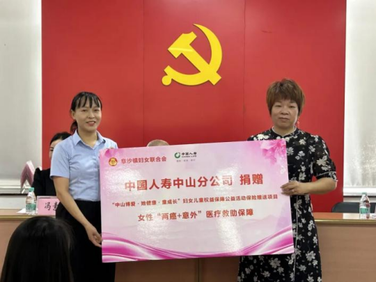 为更好地保障妇女儿童权益,2025年,市妇联和中国人寿中山分公司实施“中山博爱·她健康·童成长”慈善公益行动项目,通过公益赠险、入户慰问、公益宣传讲座、妈妈岗招募、巾帼志愿服务等系列活动,为支持、保障妇女儿童助力。